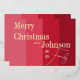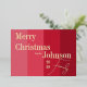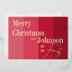 This is a stylish, Merry Christmas design with real gold foil typography. It is in modern red stripes and trending typography script. It has the message "Merry Christmas from the Johnson Family", with space for you to add your family name and year of celebration. Perfect for a modern, festive family Christmas card. To personalise, simply add your name and year, using the personalise this button. Check out the design editing tool to change the colour or font. If you need help with personalisation, matching products, or for a custom design, contact me via zazzle chat or email: ursuladawnmoon@gmail.com