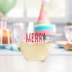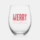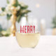 Get into the holiday spirit with this fun and festive stemless wine glass! It features the bold, distressed word "MERRY" in a vibrant red, complemented by the elegant script of "Christmas" below it. It's the perfect glass for your holiday parties, a cozy evening by the fire, or a wonderful stocking stuffer or host/hostess gift for anyone who loves the Christmas season and a good glass of wine (or a seasonal cocktail!).