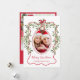 Merry Christmas Red Wavy Frame Bow Greenery Photo Holiday Card