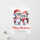Merry Christmas Red White Fun Ice Skating Penguins Holiday Card
