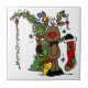 A cute and fun Christmas design features a top heavy decorated Christmas tree with text that reads Merry Christmas, a reindeer with decorated antlers, holding a Christmas stocking and candy cane on holiday T-shirts, sweatshirts, bags, mugs, cards, stickers, key chains, keepsake ornaments, and so much more.