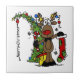 A cute and fun Christmas design features a top heavy decorated Christmas tree with text that reads Merry Christmas, a reindeer with decorated antlers, holding a Christmas stocking and candy cane on holiday T-shirts, sweatshirts, bags, mugs, cards, stickers, key chains, keepsake ornaments, and so much more.