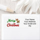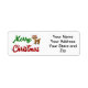 Label with Merry Christmas in 3D green and red text and a reindeer. Customise this with your own address and use to send out Christmas cards and gifts. Three label sizes to choose from.