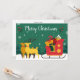 Wishing you a great holiday season! Here is a Christmas invitation with reindeer pulling a sled full of gifts for your holiday party. Trees, snow, and a green backdrop make up the scenery.