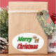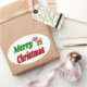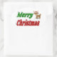 Stickers with Merry Christmas in 3D green and red text and Christmas reindeer. Stickers are available in several shapes.