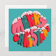 Vibrant colored letters, trees, holly and cancy canes in a cheerful message suitable for a non-religious holiday greeting. I especially liked it on the black background which made the design pop.