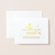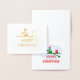 Inside, this card depicts a single rower in christmas green and wearing a christmas hat. A gift is carried in the boat, and there is a scattering of snowflakes falling in the background. The greeting in red is "MERRY CHRISTMAS". The front of the card shows a matching image in gold foil. The greeting can be edited on both the front and inside the card for your custom wording.