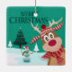 Merry Christmas Rudolph and Snowman Ceramic Ornament