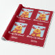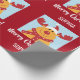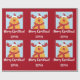 Modern Christmas gift wrap for kids, with Rudolph the Reindeer, the greeting "Merry Christmas" in stylish typography, and a personalised name. On a Xmas red background.