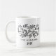 Merry Christmas Rustic Ribbon Family Name Coffee Mug. Black and white design with Merry Christmas script on a rustic ribbon with foliage. Great as a family Christmas gift. Add your family name and year.