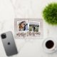 Merry Christmas Rustic Script 2 Photo Gold Foil Holiday Card