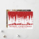 Merry Christmas customisable name and photo card in rustic red and white snow covered forest pattern. Add your custom text to this card to create a unique christmas photo greeting this holiday season for friends and family.