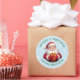 Add a festive touch to your business packaging this holiday season with these charming custom Christmas stickers! Featuring a cheerful Santa Claus holding a gift against a snowy background, these round stickers are perfect for spreading holiday cheer while promoting your brand.