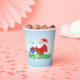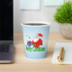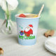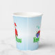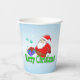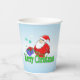 Merry Christmas Santa Claus with Gift personalized Christmas paper cups feature original art including Santa molding out a colorfully wrapped gift with a red ribbon, blue and white snowflakes against light blue sky, and Merry Christmas spelled out in a green dimensional font that matches the ribbon on the gift. These pretty cups add a festive look to your holiday party. Personalize them by adding your own images, text or background.