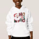 This image features Santa-claus looking happy dressed in white and red suit with gifts and ho ho ho design. This image shows festive season making it suitable for decoration during festive occasions.