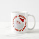 Merry Christmas Santa Face-is a digital graphic art design. A digital drawing/painting of Santa's face. He wears gold glittered eye glasses and a red and white Christmas hat. He sports a full beard, moustache and pink rosy cheeks. The background behind Santa is an allover green glittered background. Decorative red text trimmed in gold reads: HO HO HO....Merry Christmas and it circles around Santa's face. The santa and text is on both sides of the coffee mug.