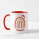Merry Christmas Santa Hat Rainbow Personalised Coffee Mug features a fun and colourful whimsical rainbow with a Santa Hat below is the text your name in modern red hand written script. To personalise edit the text in the text box provided. View other items in this collection designed by Evco Holidays https://www.zazzle.com/store/evcoholidays