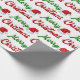 Wrapping paper with Merry Christmas in 3D green and red text and a Santa Claus hat. Available in several styles and sizes.