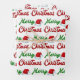 Wrapping paper sheets with Merry Christmas in 3D green and red text and a Santa Claus hat. Available in several styles.