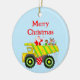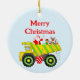Merry Christmas Santa In Dump With Elf, Rudolph Ceramic Ornament