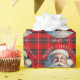 Merry Christmas Santa Festive Red Tartan Plaid Winter Holiday Wrapping Paper Gift Wrap features Santa Claus with sprinkles of snow with the text "Merry Christmas" with your personalised name below on a red tartan background. Perfect for Christmas holiday gift wrapping for family and friends. Designed by © Evco Holidays www.zazzle.com/store/evcoholidays