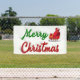 Banner with Merry Christmas in 3D green and red text and Santa's sleigh. Available in several sizes for indoor and outdoor.