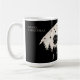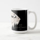 Elegant ivory white and black coffee or cocoa mug with Santa Claus and his sleigh flying across the star-filled night sky being pulled by the team of reindeer in front of a full moon. Personalise with your message, (is it Happy Holidays, Merry Christmas, or something else?) your name and the year. These mugs will make beautiful gifts for family and friends. See our matching greeting card in our shop.