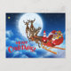 Merry Christmas Santa Sleigh with Elf and Gifts Holiday Postcard