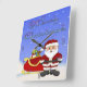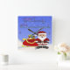 This festive Merry Christmas Santa Square Wall Clock features a snow scene background with falling snow, a Happy Santa standing next to his sleigh full of toys. Decorative purple and blue text is Merry Christmas. Perfect for any room in your home or office. Clock numbers can be deleted if you prefer your clock without them. Also makes a wonderful Christmas gift! Matching items include; pillows, dinner & cocktail napkins, place mats, kitchen towels, tiles/trivets, coaster set, mugs, pitcher, teapot, candy jars and more are also available in our shop.