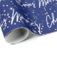 Merry Christmas Script Blue White Gold Confetti Wrapping Paper