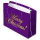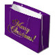 Merry Christmas Script Faux Gold Foil Elegant Purple Large Gift Bag for Christmas Gifts