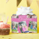 Merry Christmas Script Modern 3 Photo Personalised Wrapping Paper Gift Wrap features the text "Merry Christmas" in modern hand written calligraphy script typography with three of your favourite photos on a dark pink background. PHOTO TIP: centre photos before uploading to Zazzle. Perfect for Christmas and holiday gift wrapping. Designed by ©Evco Holidays www.zazzle.com/store/evcoholidays
