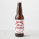 Chic, modern cursive script across a gorgeous red ribbon and bow reads MERRY CHRISTMAS in elegant cursive typography. A tied bow is super trendy for 2025 holiday party beer bottle labels. Personalise with your family or business name in the centre.