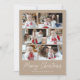 Modern holiday card featuring 6 of your photos arranged in a collage layout. "Merry Christmas" is displayed in a handwritten white script with your family name and the year shown below on a taupe background. The multi-photo holiday card reverses to display a taupe and white Christmas tree pattern.