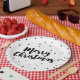 NewParkLane - Elegant Christmas paper Plates, with 'Merry Christmas' wish in elegant script typography. With a pattern of little black stars.
