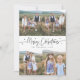 Elegant and modern holiday card featuring a script text that says "Merry Christmas" with stars and 4 pictures. Add another photo on the back along with your message. Background is white.