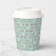 Merry Christmas Season's Greetings Let It Snow Typography Holiday Party Paper Cups features a pattern of red and white Christmas lettering on a pastel green background accented with snowflakes. Traditional Christmas holiday pattern perfect for holiday parties and celebrations. Suitable for family, friends, corporate and more. Designed by Evco Studio www.zazzle.com/store/evcostudio