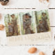 Modern and festive holiday card for families featuring a text that says "MERRY CHRISTMAS" with a family signature in script font overlapping. There are 3 photos on the front and 1 on the back. The background is cream.