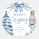 Merry Christmas silver blue bow Nutcracker Classic Round Sticker