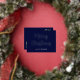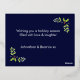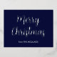 Classy holiday card displaying "Merry Christmas" on the front in silver gold foil lettering with a rich blue background. Personalise the front of the non-photo holiday card by adding your name/business name, the year, or other custom text. The back of the silver foil holiday card features your custom message in white lettering.