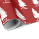 A Simple Unique Bright Red Wrapping Paper with White Christmas Tree and Text "Merry Christmas".