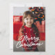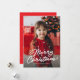 Send holiday cheer with this cute and simple Christmas photo card. With its simple "Merry Christmas" in white script and room for custom text, this vertical card makes a great family Christmas card, grandparent Christmas card, couple's Christmas card and more. The backer is a festive red with cute white dots and room for two additional photos. This simple holiday photo card by Lea Delaveris Design is part of a collection where you can find coordinating address labels, Christmas gift tags and more. It's also available in other colors and styles and as a digital Christmas card download.