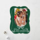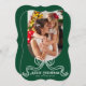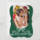 Merry Christmas Simple Modern Coquette Bow Photo Holiday Card Christmas Cards features a simple design with your favourite photo with the text overlay "Merry Christmas" in modern calligraphy script typography accented with a trendy white bow on a green background. Personalised your names or custom text below and your custom message on the reverse. Perfect for family and friends to celebrate Christmas and the holidays. Designed by ©2025 Evco Studio www.zazzle.com/store/evcostudio