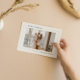 This simple and clean holiday card says "Merry Christmas" in a mix of crisp neutral coloured borders and traditional fonts, including your favourite family photo. The back of the card is a clean open canvas ready for your personalised text.