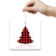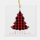 This design features a merry Christmas simple red cute, a winter holiday buffalo plaid check, a stylish trendy typography font, a festive holiday Christmas tree, a simple minimalist minimal style, with a contemporary simplistic holiday décor, a Christmas holiday keepsake decoration, custom holiday Christmas tree décor, a simple red modern typography text, a classic traditional Christmas décor