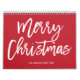 Merry Christmas simple red and white wall calendar with changeable text on cover page and changeable photos for every month of the year.