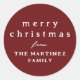 Merry Christmas simple rustic dark red holiday Classic Round Sticker