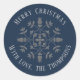 Merry Christmas Simple Silver Snowflake Elegant Classic Round Sticker