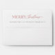 A white Christmas envelope with the stylish traditional greeting "Merry Christmas" on the back flap appearing in red. Also, on the back flap is custom text for you to add your name and return address.