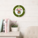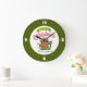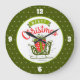 Merry Christmas Sleigh Red Green Snowflake Pattern Large Clock